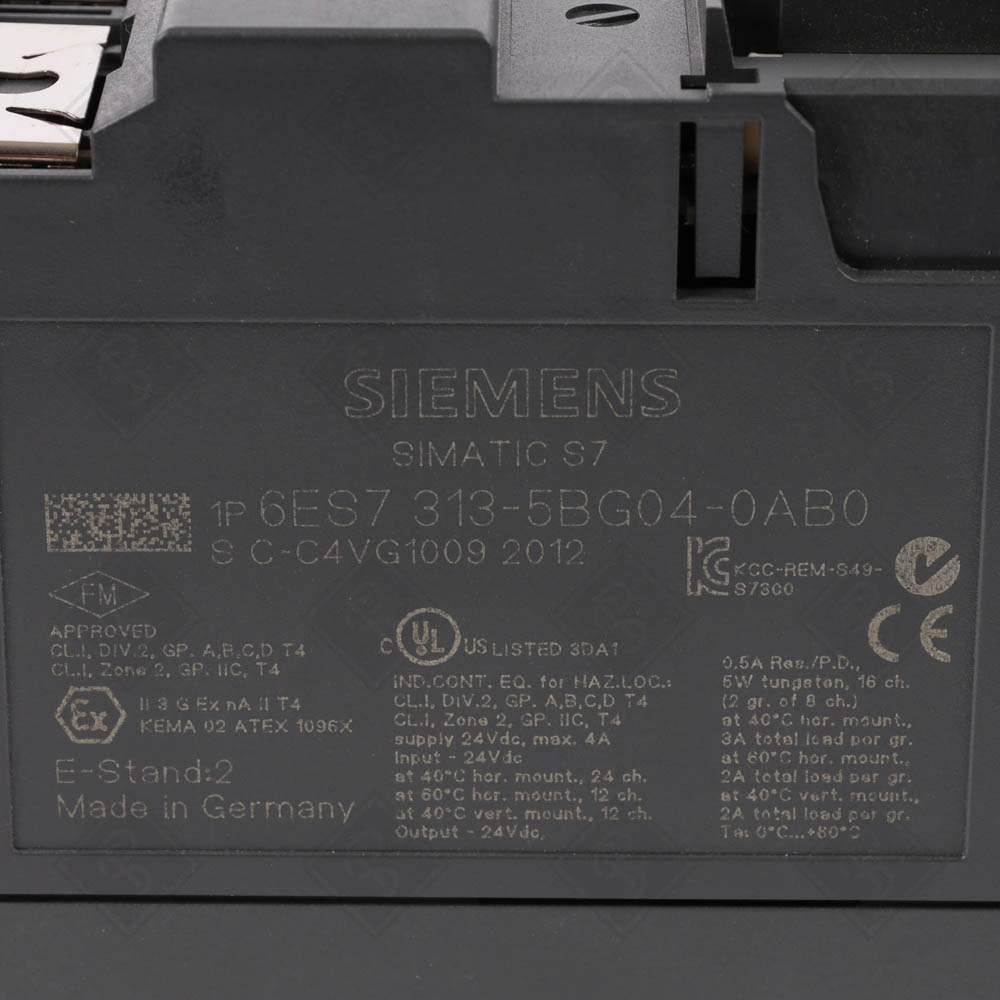 6ES7313-5BG04-0AB0 — SIMATIC S7-300, Компактное цпу cpu 313c с интерфейсом mpi, 24 di/16 do, 4ai, 2ao, 1 pt100, 3 быстрых счётчика (30 кгц), встр. блок питания =24 в, 128 кбайт рабочей памяти, для работы необходимы фронтштекеры (2 x 40пол.) и карта памяти mmc