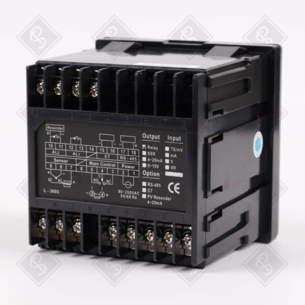 НАПРЯЖЕНИЕ ПИТАНИЯ: 85-265 В ПЕРЕМЕННОГО ТОКА, ЧАСТОТА: 50/60 ГЦ, ВХОД: ТИП K/J/PT100 (ВЫБИРАЕМЫЙ), ВЫХОД: РЕЛЕ (3 А / 250 В ПЕРЕМЕННОГО ТОКА), АЛГОРИТМ УПРАВЛЕНИЯ: ПИД + FUZZY, ДИСПЛЕЙ: 4-ЗНАЧНЫЙ СЕГМЕНТНЫЙ, РАЗМЕР: 96 Х 96 ММ, ДИАПАЗОН ИЗМЕРЕНИЯ: -50…+1300°C (ДЛЯ ТИПА K), ТОЧНОСТЬ: ±0.5% ОТ ПОЛНОЙ ШКАЛЫ, СТЕПЕНЬ ЗАЩИТЫ: IP40