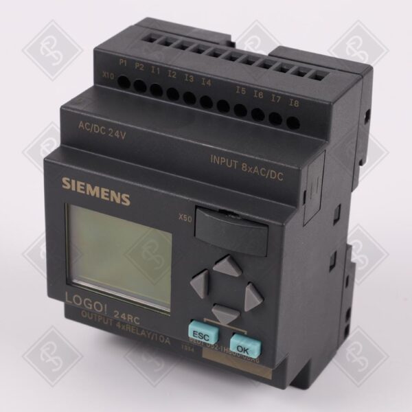 ЛОГИЧЕСКИЙ МОДУЛЬ LOGO! 24RC, НАПРЯЖЕНИЕ ПИТАНИЯ 24 В AC/DC, 8 ЦИФРОВЫХ ВХОДОВ 24 В AC/DC, 4 РЕЛЕЙНЫХ ВЫХОДА 10 А, ВСТРОЕННЫЕ ЧАСЫ РЕАЛЬНОГО ВРЕМЕНИ, ДИСПЛЕЙ, ПАМЯТЬ НА 200 БЛОКОВ, РАСШИРЯЕМЫЙ, МОНТАЖ НА DIN-РЕЙКУ 35 ММ, СТЕПЕНЬ ЗАЩИТЫ IP20, РАБОЧАЯ ТЕМПЕРАТУРА 0…+55°C