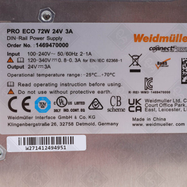 Импульсный блок питания Weidmuller PRO ECO 72W 24V 3A