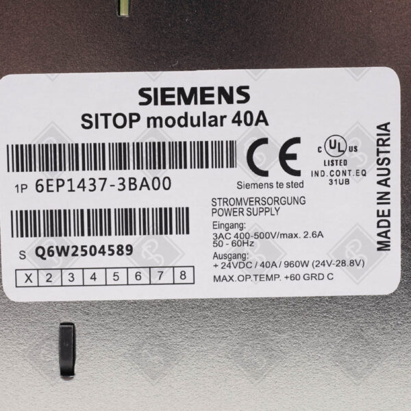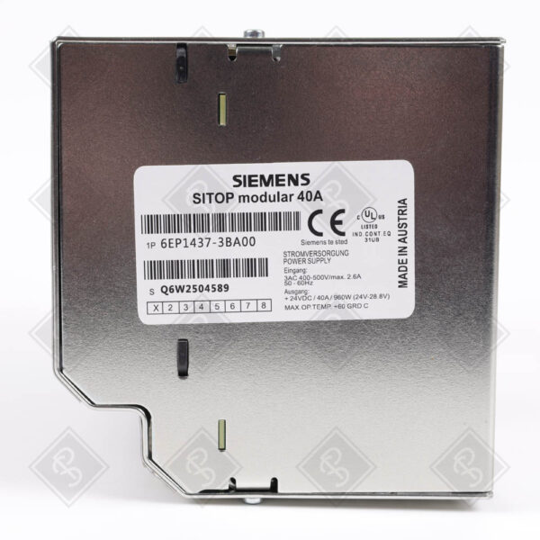 СТАБИЛИЗИРОВАННЫЙ БЛОК ПИТАНИЯ SITOP MODULAR 40, ВХОД 3-ФАЗНЫЙ 400-500 В ПЕРЕМЕННОГО ТОКА 50/60 ГЦ, ВЫХОД 24 В ПОСТОЯННОГО ТОКА 40 А, МОЩНОСТЬ 960 ВТ, РЕГУЛИРУЕМОЕ ВЫХОДНОЕ НАПРЯЖЕНИЕ 24-28 В, МОНТАЖ НА DIN-РЕЙКУ, ЗАЩИТА ОТ КОРОТКОГО ЗАМЫКАНИЯ И ПЕРЕГРУЗКИ.