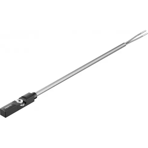 Датчик положения Festo для Т-образной канавки. Магниторезистивный, стойкий к щелочам, кислотам и СОЖ, нормально разомкнутый контакт, диапазон рабочего напряжения: 5 ÷ 30V DC, электрическое подключение: 3-жильный кабель длиной 10 м.