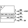 - как датчик положения, обеспечивает выходной сигнал, пропорциональный ходу в пределах диапазона чувствительности. Сигнал становится доступен в IO-Link. Более того, 4 канала можно запрограммировать через IO-Link как датчик приближения, оконный компаратор или компаратор гистерезиса.