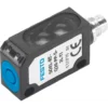 Оптический датчик положения Festo, диффузионный. Размер: 20×32×12 мм, выход переключателя: PNP, рабочий диапазон: 40…150 мм, электр. подключение: разъем М8×1, 4-пин. Датчик рассеивания, блочная конструкция.