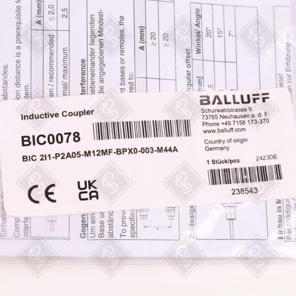 Индуктивный соединитель (удаленный модуль для передачи сигналов) Balluf BIC0078 BIC 2I1-P2A05-M12MF-BPX0-003-M44A ()