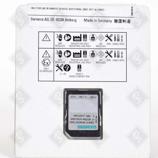 СЕРИЯ: SIMATIC S7, ТИП МОДУЛЯ: МИКРОПАМЯТЬ (MMC), ОБЪЁМ ПАМЯТИ: 12 МБ, ТИП ПАМЯТИ: FLASH-EPROM, НАПРЯЖЕНИЕ: 3.3 В, СОВМЕСТИМОСТЬ: S7-1200/S7-1500/SINAMICS, КОЛИЧЕСТВО ЦИКЛОВ ЗАПИСИ/СТИРАНИЯ: 500 000, ДАННЫЕ СОХРАНЯЮТСЯ: МИНИМУМ 10 ЛЕТ
