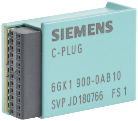 6GK1900-0AB10 — C-plug, removable data storage medium for simple device replacement in case of fault, for recording configuration or configuration and application data, can be used in the following SIMATIC NET products with C-plug slot: SCALANCE XC-200, XP-200, XM-400, XR-500, M-800 S615 and W-700