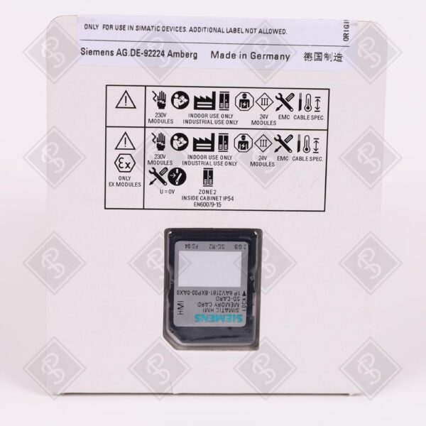 Используется для хранения данных, программного обеспечения и конфигураций в системах промышленной автоматизации, таких как панели оператора и ПЛК. Совместим с устройствами Siemens SIMATIC, включая HMI-панели (например, TP1200 Comfort) и контроллеры с соответствующим слотом SD, поддерживает резервное копирование и перенос данных.