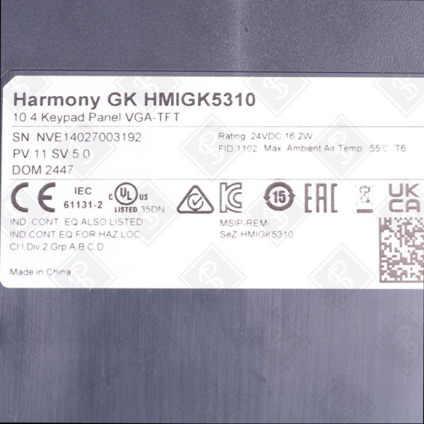 ПАНЕЛЬ ОПЕРАТОРА HARMONY GK, 10.4-ДЮЙМОВЫЙ VGA-TFT ЭКРАН, КЛАВИАТУРА, РАЗРЕШЕНИЕ 640X480 ПИКСЕЛЕЙ, ПИТАНИЕ 24 В ПОСТОЯННОГО ТОКА, ПОТРЕБЛЯЕМАЯ МОЩНОСТЬ 16.2 ВТ, СТЕПЕНЬ ЗАЩИТЫ IP65 (ПЕРЕДНЯЯ ПАНЕЛЬ), РАБОЧАЯ ТЕМПЕРАТУРА 0…+55°C, МАКСИМАЛЬНАЯ ТЕМПЕРАТУРА ОКРУЖАЮЩЕГО ВОЗДУХА 55°C, СЕРТИФИКАТЫ CE, UL, CSA, IEC 61131-2, КЛАССИФИКАЦИЯ ДЛЯ ОПАСНЫХ ЗОН C1 DIV 2 GRP A,B,C,D, ВСТРОЕННАЯ ПАМЯТЬ 32 МБ, ПОДДЕРЖКА ETHERNET И RS-232/485