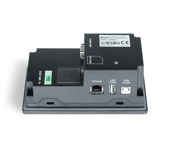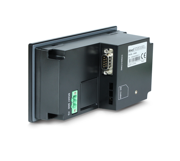 Панель оператора сенсорная, серии Green, дисплей TFT, размер 4,3″, разрешение 480×272 точек, 16,77 млн. цв., яркость 300 кд/м2, встроенные интерфейсы 2xRS232, 1xRS485, 1xRS422, 1xUSB slave, 2xUSB host,1xRJ45, напряжение питания 24 В DC, потребляемая мощность 3,5 Вт, габаритные размеры ВхШхГ 89х154х60 мм, монтажный вырез 146х81 мм, вес 0,4 кг, степень защиты IP65, среда разработки Kinco Dtools, максимальное кол-во экранов в проекте HMI 999.