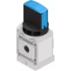 Ручной клапан вкл./выкл. Festo серии “MS”, распределитель 3/2 бистабильный, резьба G1/2”, рабочее давление на входе 0 … 18 бар, расход воздуха 8700 л/мин, направление потока нереверсивное.