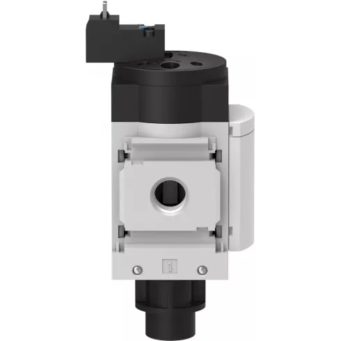 Электрический клапан вкл./выкл. Festo серии “MS”, распределитель 3/2 Н.З., моностабильный, резьба G1/2”, рабочее давление на входе 4 … 18 бар, расход воздуха 7000 л/мин, катушка 230V AC: 50/60 Hz, нереверсивное направление потока.