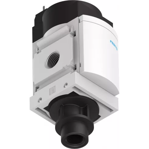Электрический клапан вкл./выкл. Festo серии “MS”, распределитель 3/2 Н.З., моностабильный, резьба G3/8”, рабочее давление на входе 4 … 10 бар, расход воздуха 5500 л/мин, эл-маг. катушка 24V DC: 2,5 W, направление потока нереверсивное.