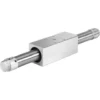 Линейный привод Festo DGO-25-PPV-A-B — беспоршневой цилиндр двустороннего действия с магнитной связью. Используется в системах, где требуется идеальная герметичность и отсутствие утечек. Движение каретки осуществляется за счет электромагнитных сил постоянных магнитов, что позволяет отказаться от выдвигающегося штока и позволяет уменьшить монтажное пространство. Отсутствие механической связи между кареткой и поршнем дало возможность герметично уплотнить полости цилиндра и избежать каких-либо потерь сжатого воздуха.