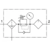 - KF — клапан подачи/сброса, фильтр-регулятор, маслораспылитель, клапан подачи/сброса с катушкой на 24 В постоянного тока без штекерной розетки, клапан плавного пуска, модуль разветвления с реле давления без розетки.
