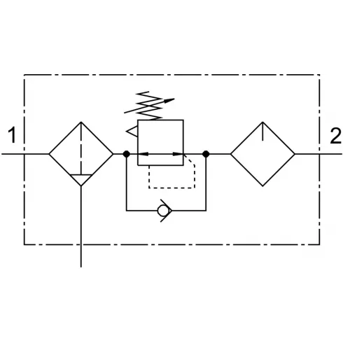 • KE — фильтр-регулятор, маслораспылитель, клапан подачи/сброса с катушкой на 24 В постоянного тока без штекерной розетки, клапан плавного пуска;