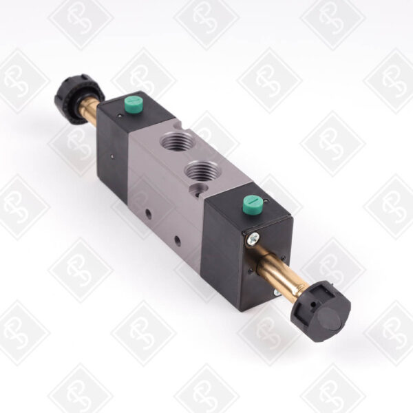 ЭЛЕКТРОМАГНИТНЫЙ КЛАПАН 5/2 БИСТАБИЛЬНЫЙ, ПРИСОЕДИНЕНИЕ G1/4, НОМИНАЛЬНЫЙ РАСХОД 890 Л/МИН ПРИ 6 БАР, РАБОЧЕЕ ДАВЛЕНИЕ 0-8 БАР, ДИАМЕТР ОТВЕРСТИЯ 6.5 ММ, НАПРЯЖЕНИЕ УПРАВЛЕНИЯ ТРЕБУЕТ СОЛЕНОИДНОЙ КАТУШКИ (БЕЗ КАТУШКИ В КОМПЛЕКТЕ), РАБОЧАЯ ТЕМПЕРАТУРА -5…+50°C, МАТЕРИАЛ КОРПУСА — АЛЮМИНИЙ
