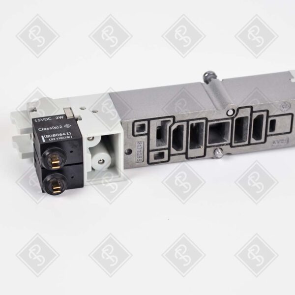 ЭЛЕКТРОМАГНИТНЫЙ ПНЕВМАТИЧЕСКИЙ КЛАПАН 5/3 С ФУНКЦИЕЙ ВЫХЛОПА В СРЕДНЕЙ ПОЗИЦИИ, ЭЛЕКТРИЧЕСКОЕ УПРАВЛЕНИЕ, НАПРЯЖЕНИЕ КАТУШКИ 24 В DC, НОМИНАЛЬНЫЙ РАСХОД 700 Л/МИН, РАЗМЕР 20 ММ, ПОДКЛЮЧЕНИЕ ПЛИТА/ФЛАНЕЦ, КЛАСС ЗАЩИТЫ IP65, МАТЕРИАЛ КОРПУСА АЛЮМИНИЙ.