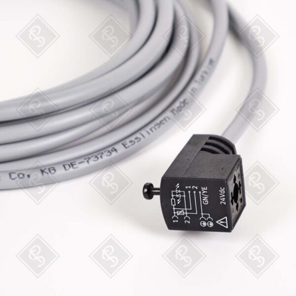 УГЛОВАЯ ВИЛКА С КАБЕЛЕМ 5 М, 24 В DC, 3-КОНТАКТНЫЙ РАЗЪЕМ ТИПА C ПО DIN EN 175301-803, СВЕТОДИОДНАЯ ИНДИКАЦИЯ СОСТОЯНИЯ, КРЕПЛЕНИЕ НА КЛАПАН ВИНТОМ M2.5, PVC ИЗОЛЯЦИЯ, IP65