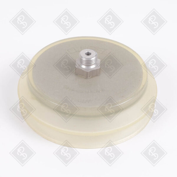ВАКУУМНАЯ ПРИСОСКА С СОЕДИНЕНИЕМ, ДИАМЕТР 100 ММ, ОБЪЕМ 128 КУБ. СМ, ВЫСОТА КОМПЕНСАТОРА 15,5 ММ, РАБОЧЕЕ ДАВЛЕНИЕ ОТ –0,95 БАР ДО 0 БАР, НОМИНАЛЬНОЕ РАБОЧЕЕ ДАВЛЕНИЕ 0,7 БАР.
