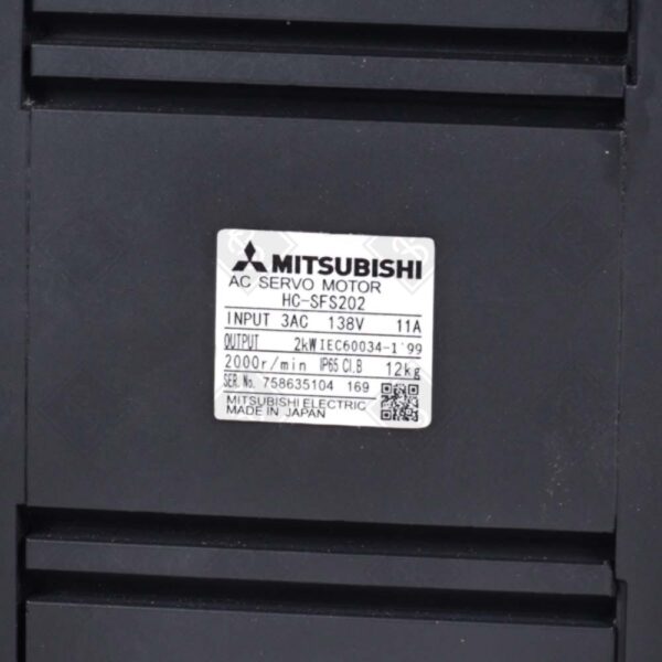 СЕРВОДВИГАТЕЛЬ ПЕРЕМЕННОГО ТОКА MITSUBISHI ELECTRIC HC-SFS202, НОМИНАЛЬНАЯ МОЩНОСТЬ 2,0 КВТ, НОМИНАЛЬНЫЙ КРУТЯЩИЙ МОМЕНТ 9,55 Н·М, НОМИНАЛЬНАЯ СКОРОСТЬ 2000 ОБ/МИН, МАКСИМАЛЬНАЯ СКОРОСТЬ 2500 ОБ/МИН, НОМИНАЛЬНЫЙ ТОК 11 А, ВСТРОЕННЫЙ 17-БИТНЫЙ АБСОЛЮТНЫЙ ЭНКОДЕР, СТЕПЕНЬ ЗАЩИТЫ IP65