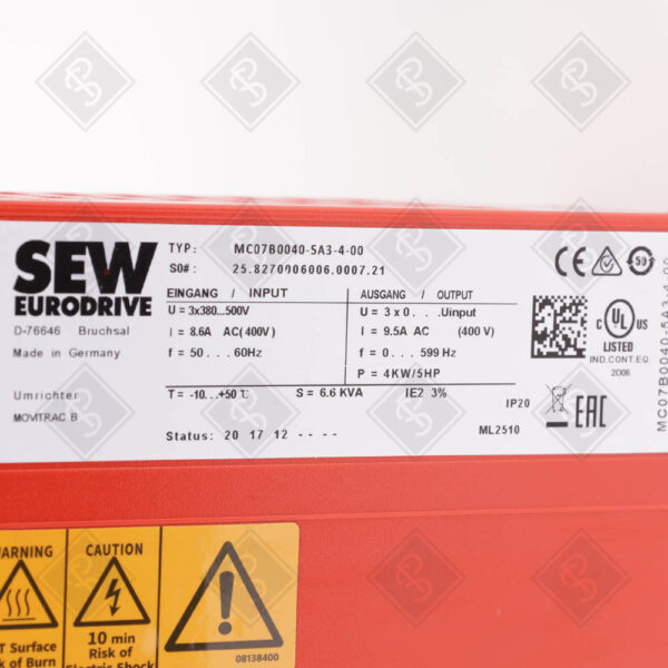 Частотный преобразователь (инвертор) SEW Eurodrive MC07B0040-5A3-4-00 вы можете приобрести оптом или в розницу в интернет-магазине PROSISTEMIKA.RU. Мы гарантируем высокое качество продукции и своевременную доставку.
