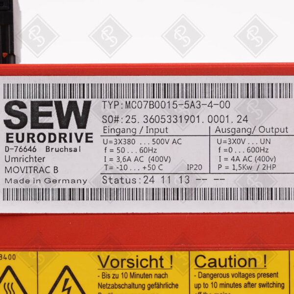 Преобразователь частоты Sew Eurodrive MC07B0015-5A3-4-00 вы можете приобрести оптом или в розницу в интернет-магазине PROSISTEMIKA.RU. Мы гарантируем высокое качество продукции и своевременную доставку.