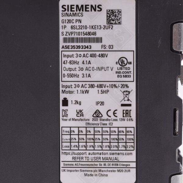 Используется для управления скоростью и моментом трехфазных асинхронных электродвигателей в промышленных установках, вентиляторах, насосах, транспортных системах и производственном оборудовании. Совместим с электродвигателями стандартов IEC, системами автоматизации Siemens и оборудованием, поддерживающим PROFINET и EtherNet/IP.