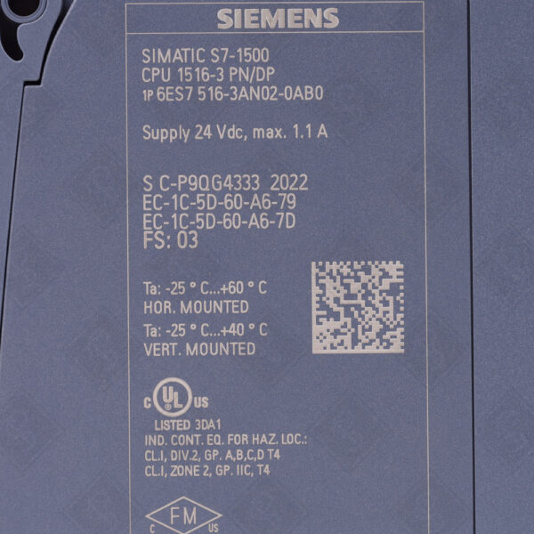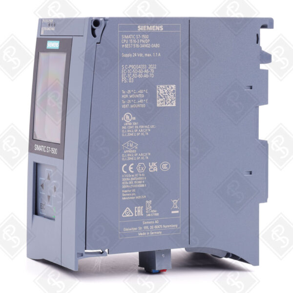 ЦЕНТРАЛЬНЫЙ ПРОЦЕССОР CPU 1516-3 PN/DP, РАБОЧАЯ ПАМЯТЬ 1 МБ ДЛЯ ПРОГРАММЫ И 5 МБ ДЛЯ ДАННЫХ, ПРОИЗВОДИТЕЛЬНОСТЬ 10 НС НА БИТОВУЮ ОПЕРАЦИЮ, ИНТЕРФЕЙСЫ: PROFINET IRT С ДВУХПОРТОВЫМ КОММУТАТОРОМ, PROFINET RT, PROFIBUS, ПИТАНИЕ 24 В DC, ТРЕБУЕТСЯ КАРТА ПАМЯТИ SIMATIC MC