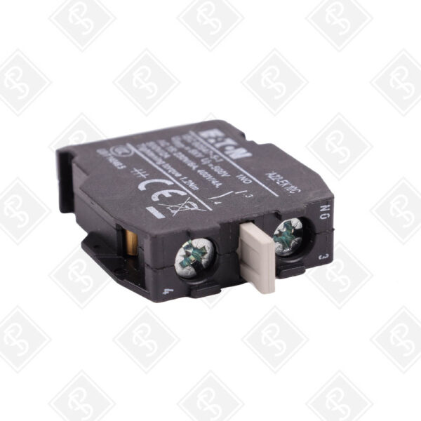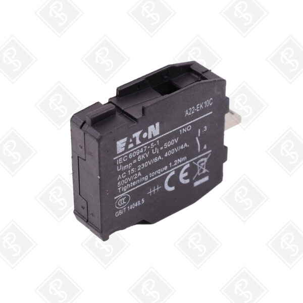 Используется для расширения цепей управления в системах промышленной автоматизации, добавляя контакт к кнопкам, переключателям или аварийным устройствам на производственных линиях, в шкафах управления и машиностроении. Совместим с пилотными устройствами Eaton серии A22 (например, кнопки A22-ML, переключатели A22-RK, аварийные кнопки A22-E), а также с адаптерами A22-BE3C. Подходит для сигнальных и управляющих цепей низкого тока.