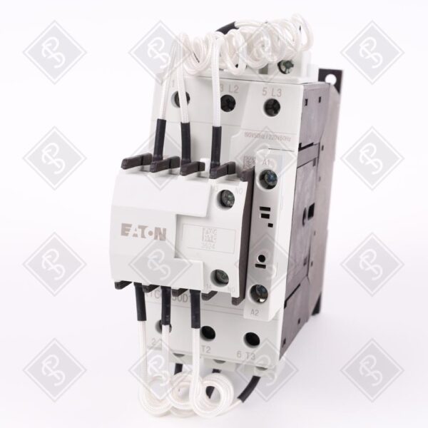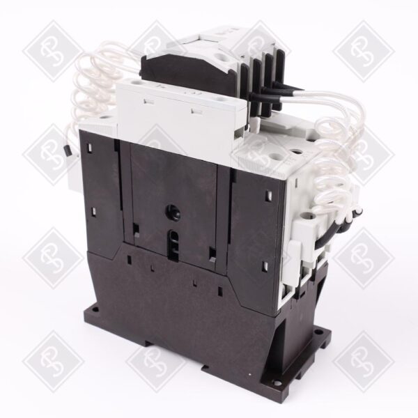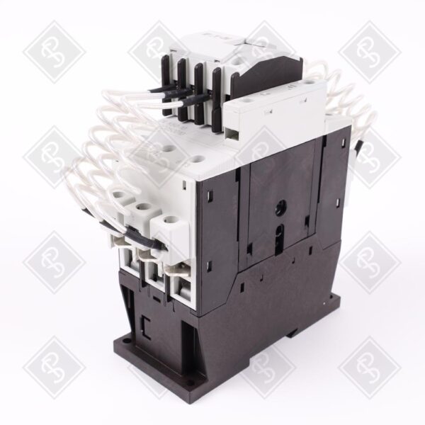 Используется для коммутации конденсаторов в системах центральной компенсации реактивной мощности с пиковыми токами до 180-кратного значения. Предварительная зарядка конденсаторов через вспомогательные контакты и резисторы снижает пусковой ток. Совместим с системами управления Eaton и другими устройствами в низковольтных распределительных сетях.