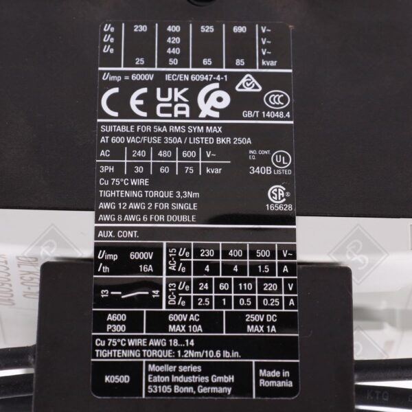 КОНТАКТОР ДЛЯ ТРЕХФАЗНЫХ КОНДЕНСАТОРОВ С РЯДНЫМИ РЕЗИСТОРАМИ, НОМИНАЛЬНАЯ РЕАКТИВНАЯ МОЩНОСТЬ 60 КВАР ПРИ 400 В (75 КВАР ПРИ 600 В), НОМИНАЛЬНОЕ УПРАВЛЯЮЩЕЕ НАПРЯЖЕНИЕ 230 В 50 ГЦ / 240 В 60 ГЦ (ТИПИЧНО), 3 ПОЛЮСА, ВСПОМОГАТЕЛЬНЫЙ КОНТАКТ 1 НО (НОРМАЛЬНО ОТКРЫТЫЙ, 4 А ПРИ 230 В AC), ПОДКЛЮЧЕНИЕ ВИНТОВЫЕ КЛЕММЫ, СТЕПЕНЬ ЗАЩИТЫ IP20, РАБОЧАЯ ТЕМПЕРАТУРА -25…+60°C, РАЗМЕРЫ 147 x 76 x 125 ММ