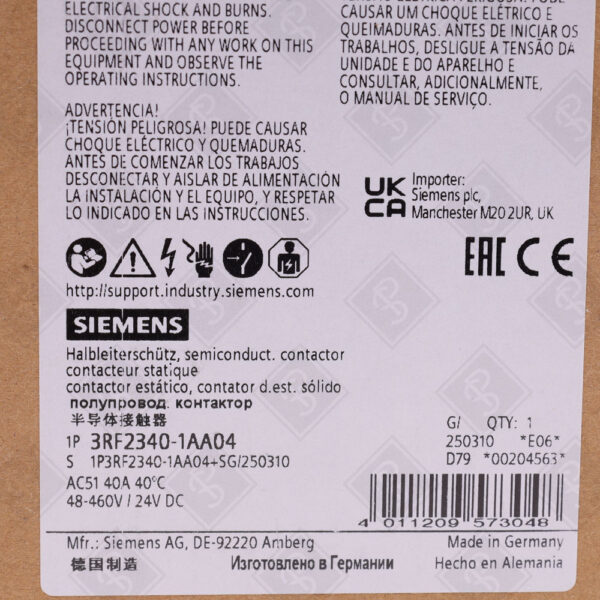 Твердотельный контактор однофазный Siemens 3RF2340-1AA04 вы можете приобрести оптом или в розницу в интернет-магазине PROSISTEMIKA.RU. Мы гарантируем высокое качество продукции и своевременную доставку.