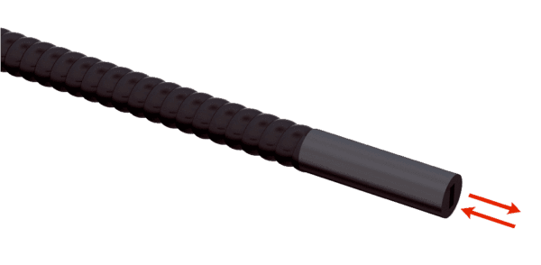 По форме кабель выполнен как Гладкий цилиндр. Имеет чувствительный сенсор диаметром 5,8 мм. Для изготовления волокна используется стекло.