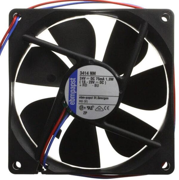 Аксиальный (осевой) вентилятор Ebmpapst 3414 NM имеет компактные размеры и высокую производительность. Применяется в бытовом и промышленном оборудовании, требующем охлаждение внутреннего пространства и воздухообмена. Выпускается немецким брендом Ebmpapst, соответствует требованиям нормативно-технической документации, международных стандартов, сертифицирован и прошел контроль качества и необходимые испытания. Качество и срок службы многократно выше, чем у китайских аналогов. Предоставляется гарантия от производителя.