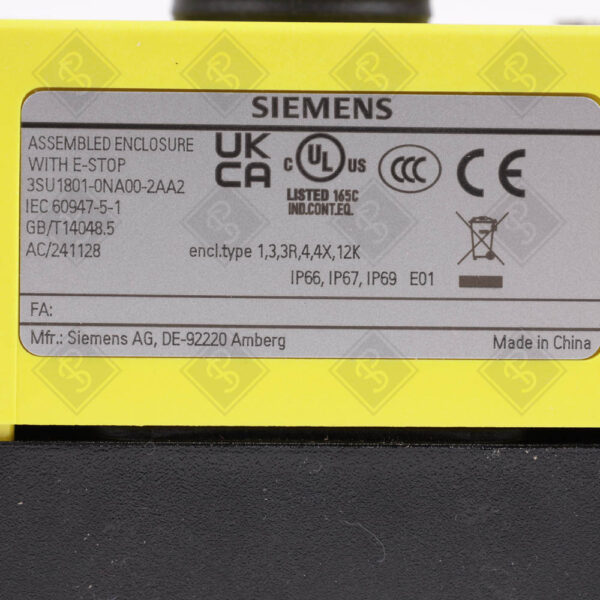 Используется для экстренного останова оборудования в системах автоматизации (например, на производственных линиях), совместим с кнопочными элементами Siemens серии 3SU1 (диаметр 22 мм) и системами управления с контактами НЗ