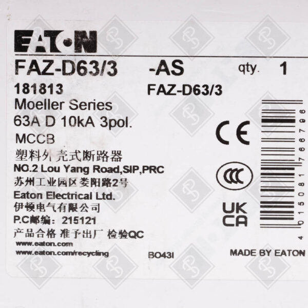 Автоматический выключатель Eaton FAZ-D63/3 вы можете приобрести оптом или в розницу в интернет-магазине PROSISTEMIKA.RU. Мы гарантируем высокое качество продукции и своевременную доставку.