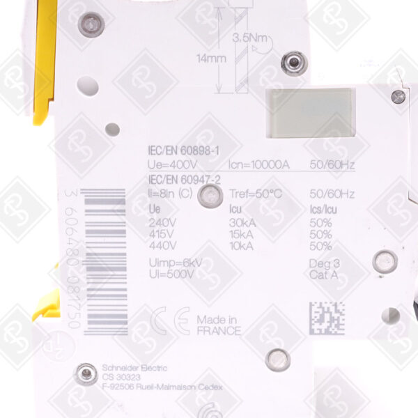Применяется в электрических установках для защиты цепей от перегрузок и коротких замыканий, например, в жилых, коммерческих и промышленных зданиях. Совместим с серией Acti9 iC60H, подключается через двойные туннельные клеммы, подходит для систем с напряжением до 400 В.