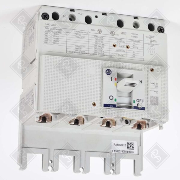 ALLEN-BRADLEY 140G-J2X4 – АВТОМАТИЧЕСКИЙ ВЫКЛЮЧАТЕЛЬ В ЛИТОМ КОРПУСЕ С РАМКОЙ J-FRAME, НОМИНАЛЬНЫЙ ТОК 250 А, 4 ПОЛЮСА, СПОСОБНОСТЬ РАЗМЫКАНИЯ 25 KA ПРИ 480 V (ВОЗМОЖНО ДО 36 KA ПРИ 415 V), СЕРТИФИЦИРОВАН ПО UL, CSA, CE И CCC, ГАБАРИТЫ ПРИБЛИЗИТЕЛЬНО 15,5×18,4×21,6 СМ – НАДЕЖНАЯ ЗАЩИТА ОТ ПЕРЕГРУЗОК И КОРОТКИХ ЗАМЫКАНИЙ.